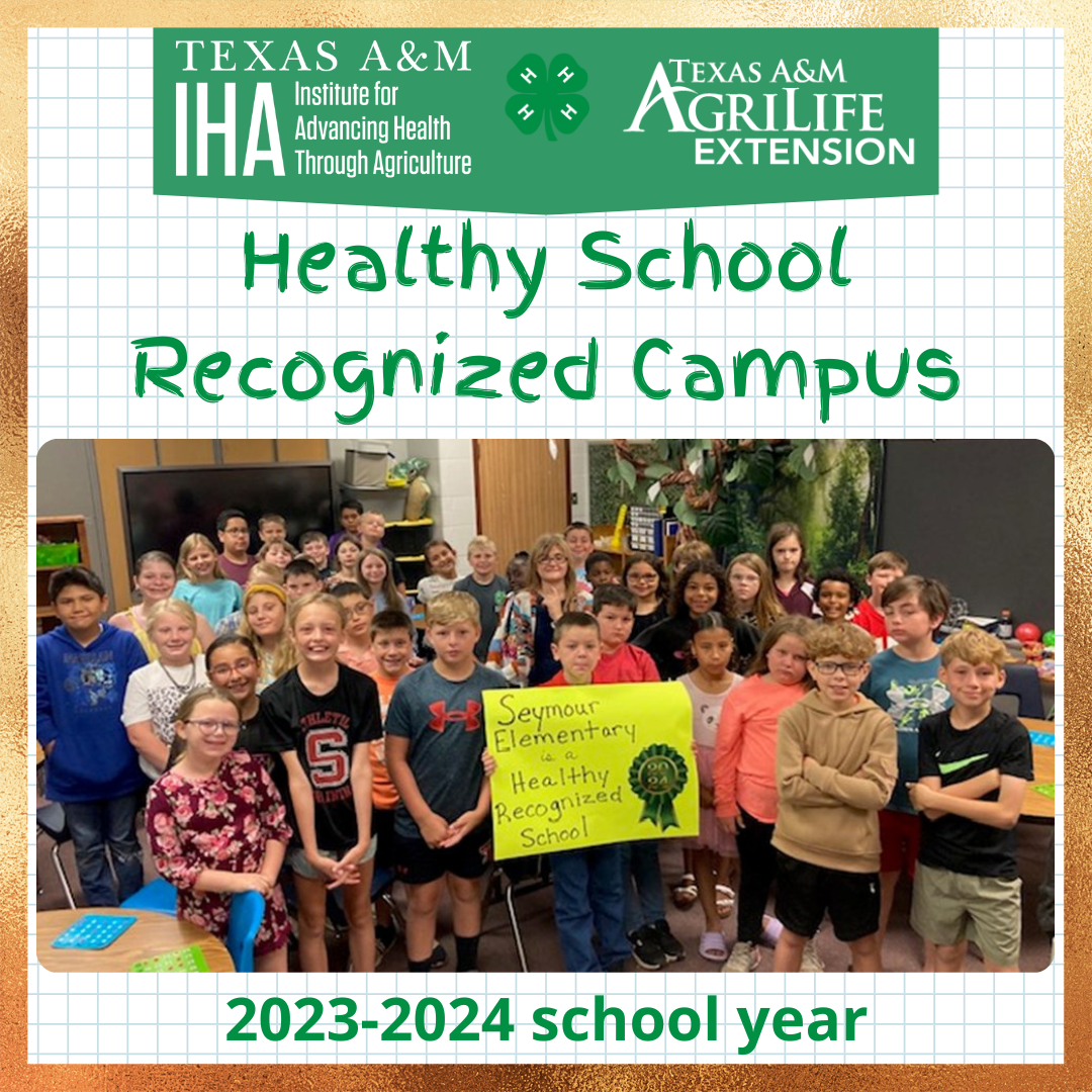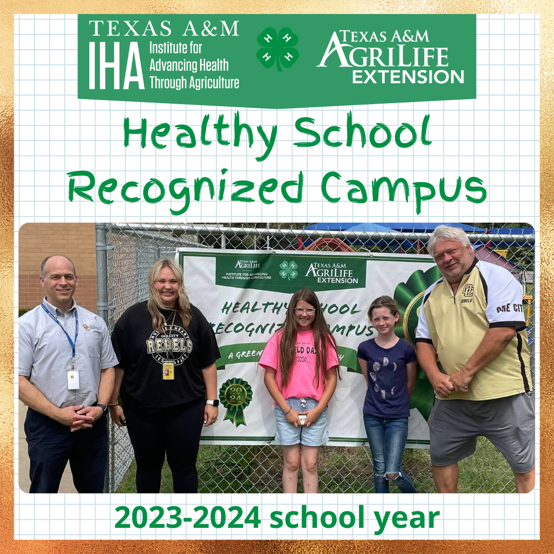 Schools participating in the Healthy School Recognized Campus (HSRC) initiative host Texas A&M AgriLife Extension programs for their students, staff, and parents/guardians. Schools that are recognized as a Healthy School Recognized Campus demonstrate a commitment to supporting and encouraging health throughout the life course.